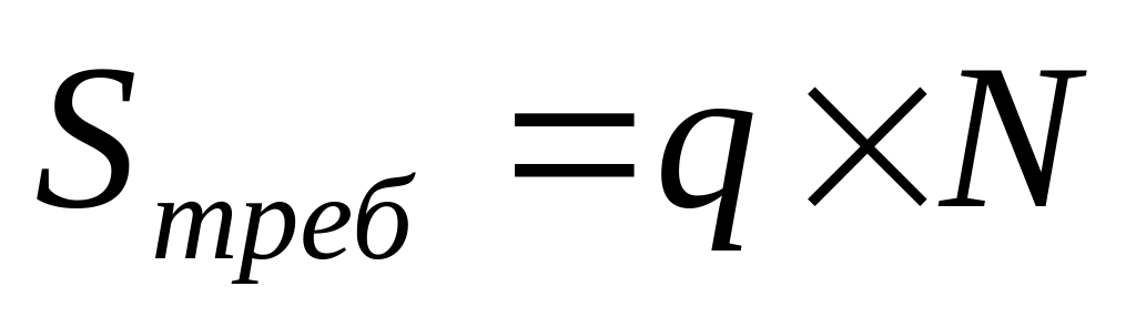 Площадь временных зданий различного назначения Sтреб определяется по формуле: