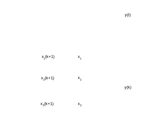 Матрицы коэффициентов А и С дискретной системы получим из схем моделирования (рис. 11.3), приняв выход каждого элемента задержки за переменную состояния, обозначив их через x1, x2, x3. Тогда входы элементов задержки будут равны x1(k + 1), x2(k + 1), x3(k + 1), а уравнения состояния запишутся в виде