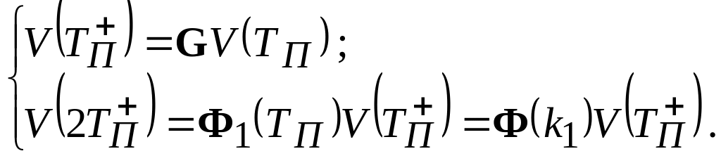 Через фундаментальную матрицу Ф(Т), которая на каждом интервале дискретности будет зависеть от коэффициента k, определяется расширенный вектор состояния. D конце первого интервала дискретности