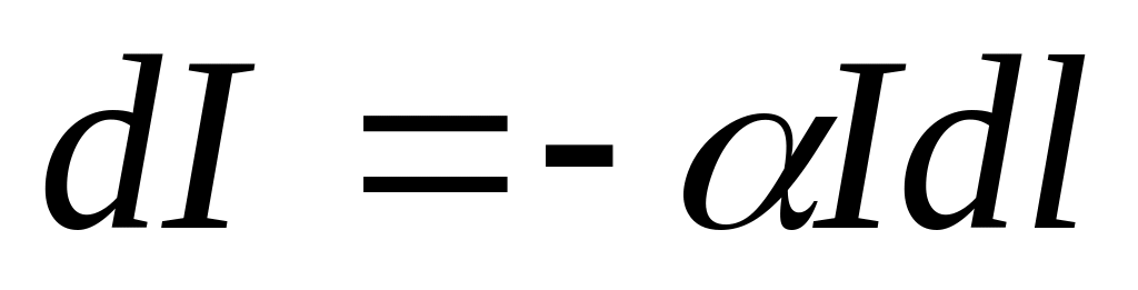 Поглощение света. При прохождении света через вещество интенсивность его уменьшается — часть светового потока поглощается веществом. Опыт показывает, что изменение интенсивности на пути dl пропорционально длине этого пути и самой интенсивности: