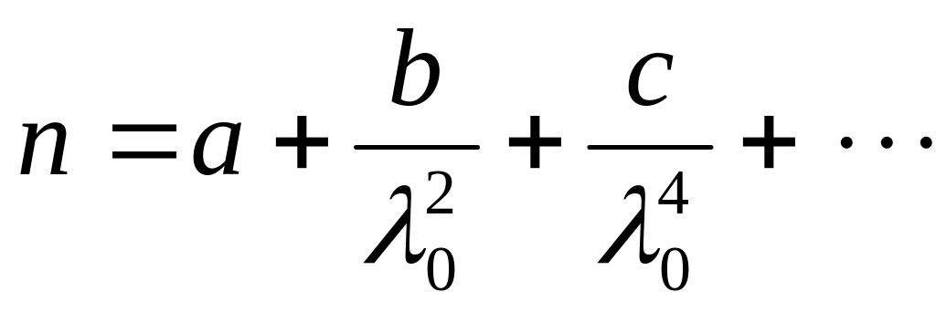 Для большинства прозрачных веществ п возрастает с уменьшением 0. Такой характер дисперсии называют нормальным. Зависимость п от 0 в области нормальной дисперсии описывается формулой Коши: