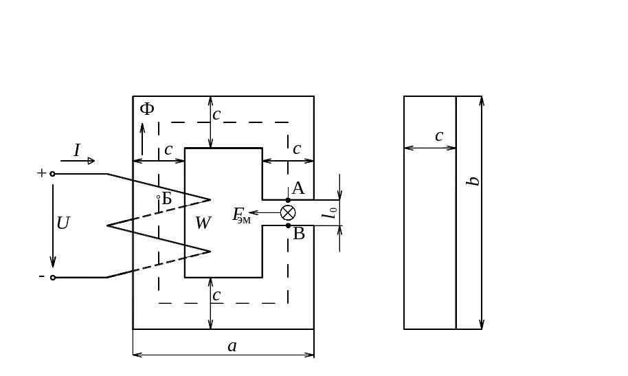 В выражении для определения электромагнитной силы длина провода l равна толщине магнитопровода с.