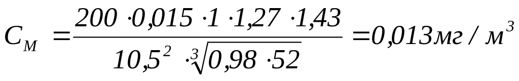 Визначаємо максимальну приземну концентрацію шкідливої речовини по формулі: