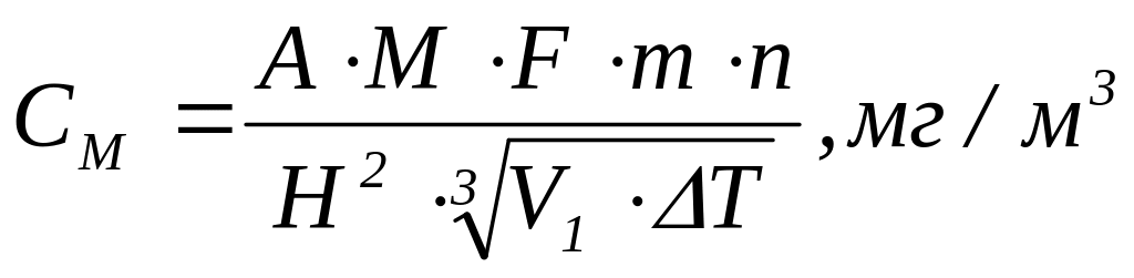 Визначаємо максимальну концентрацію шкідливої речовини у викиді біля устя джерела: