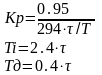Для розрахунку ПІД регулятора маємо такі стандартні формули:
