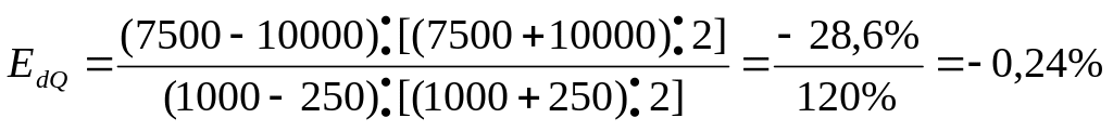 Приклад2: Якщо попит на помідори становив 10000 тон на місяць, а потім зменшився до 7500, а ціна з 250 грн. за тону зросла до 1000 грн. за тону.