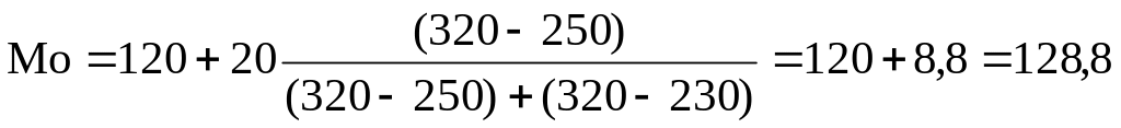 Мода (модальна величина) ряду – це така величина, яка найбільш часто зустрічається в даному розподілі.