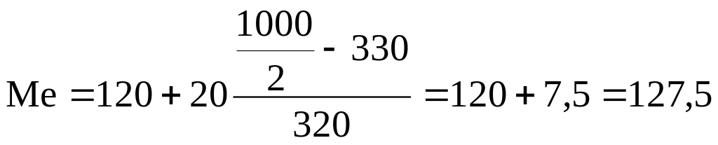 Sm-1 – сума накопичених частот до медіанного інтервалу.