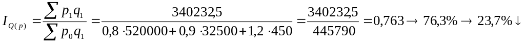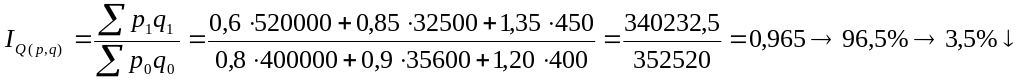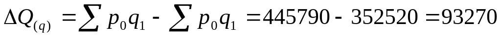 Тепер розрахуємо індекс впливу кількості продукції на загальний товарообіг. В даному випадку ми фіксуємо p , тобто ціну, яка є якісним фактором.