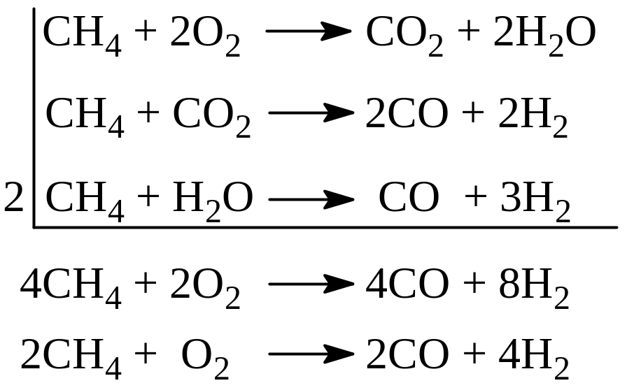 СН4 + 2Н2О(пар) → СО2 + 4Н2
