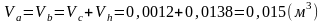 Объемы цилиндра, соответствующие точкам а и b:
