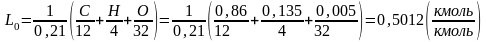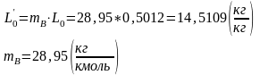 Теоретически необходимое количество воздуха в кило молях для сгорания 1 кг жидкого топлива: