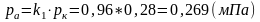 Степень понижения давления при сгорании: