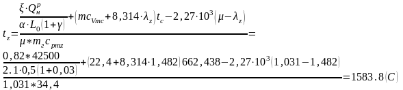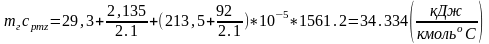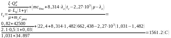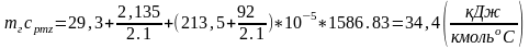 Вычисление величин, относящиеся к процессу сгорания для определения температуры в конце сгорания Tz.