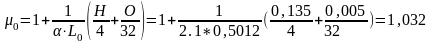 Химический коэффициент молекулярного изменения μ0, характеризующий относительное увеличение числа молей продуктов сгорания по сравнению с числом молей воздуха, участвующего в горении, определяем по формуле: