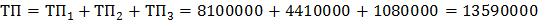 Таким образом П = 1575000 + 857500 + 210000 = 2642500.