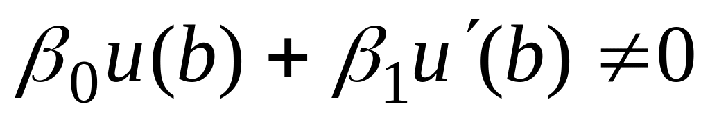 Отсюда видно, что u есть решение задачи Коши для однородного уравнения (4), удовлетворяющее начальным условиям (9), а v есть решение задачи Коши для неоднородного уравнения (5), удовлетворяющее начальным условиям (10) или (11). При этом для любого с функция y = cu + v удовлетворяет краевому условию на конце x = a.