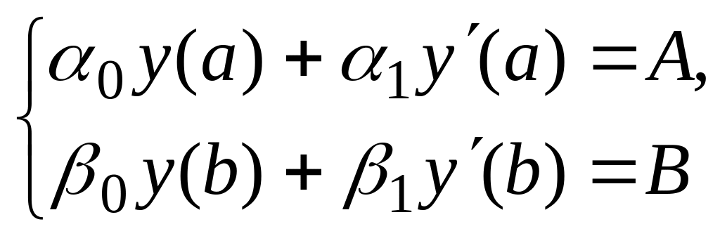 где функции: p(x), q(x), f(x) непрерывны. Требуется найти решение уравнения (1), удовлетворяющее краевым условиям: