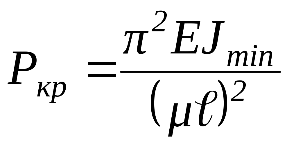 где Jmin – наименьший момент инерции стержня, так как очевидно, что изгиб произойдёт в плоскости наименьшей жёсткости.