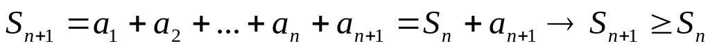 Теорема 1. Последовательность частичных сумм положительного ряда монотонно возрастает.