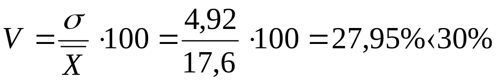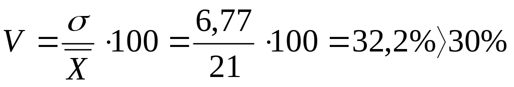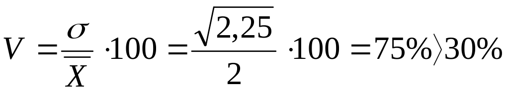 4. Известно, что среднее значение одного из двух признаков равно 200, а его дисперсия – 2500, среднее значение второго признака равно 2,0, и его дисперсия – 2,25. Установить, по какому из этих признаков совокупность является более однородной.