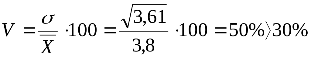 5. Известно, что среднее значение одного из двух признаков равно 400, а его дисперсия – 3600, среднее значение второго признака равно 3,8, и его дисперсия – 3,61. Установить, по какому из этих признаков совокупность является более однородной