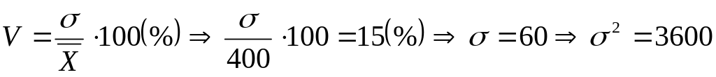 7. Дисперсия признака равна 160000, коэффициент вариации равен 25%. Найти среднюю величину признака.