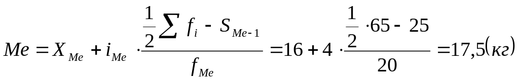 Медиана - значение признака, у которого накопленная частота впервые превышает полусумму всех частот ряда