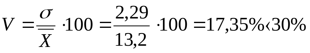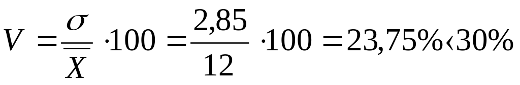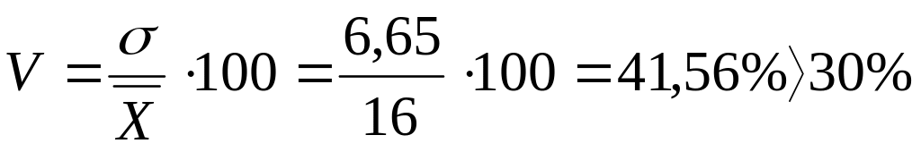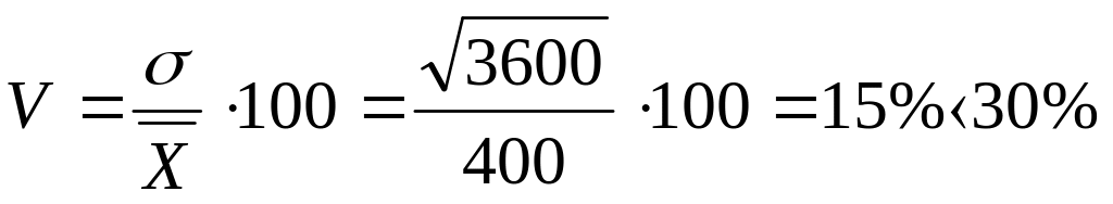6. Средняя величина признака равна 400, а коэффициент вариации равен 15%. Найти дисперсию признака.