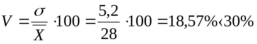 Совокупность по группе 1 более однородная, т. к. коэффициент вариации меньший
