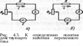 Для измерения переменного тока, напряжения и ЭДС вводят понятие действующего значения. Переменный ток сравнивают с постоянным по тепловому действию. Если положение реостатов подобрано так, что количество теплоты, выделяемой в схемах на резисторе R, оказывается одинаковым, то можно считать, что и токи в схемах одинаковы.