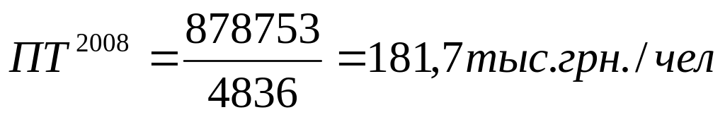 Таким образом, изменение производительности труда под воздействием І группы факторов в 2008 г. составило 2,7, а в 2009 г. снизилось и составило 2,52.