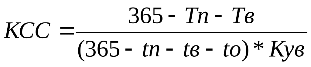 КССр = 365-75-20/(365-20-75-24)*0,96 = 1,18;