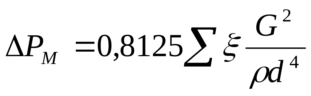где Рл - линейная потеря давления; Рм - потеря давления в местных сопротивлениях.