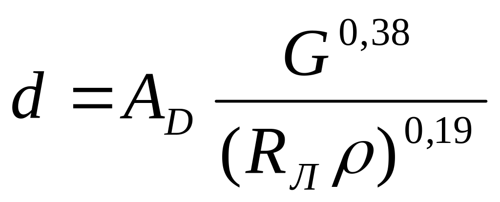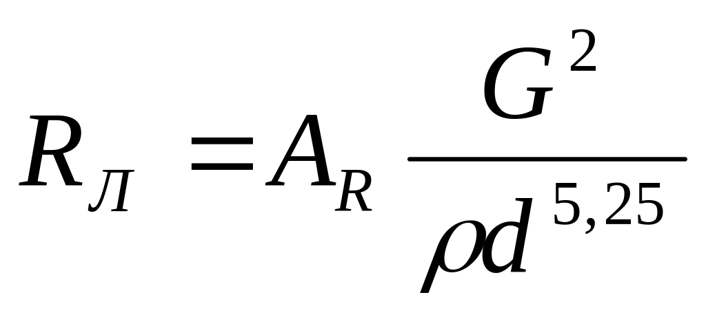 В формулах приняты, кроме вышеназванных, следующие буквенные обозначения и единицы измерения: массовый расход G, кг/с, плотность , кг/м3, абсолютная эквивалентная шероховатость kэ, и диаметр d, м. Размерность и значения коэффициентов А приведены в табл. 1.10.