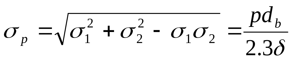 Суммарное напряжение от растяжения под действием внутреннего давления определяется по энергетической теории прочности: