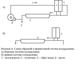 В прямоточных (рис.4б) системах вся вода, транспортирующая на золоотвал остатки, после освобождения от них, т.е. после осветления сбрасываются в природные водоёмы.