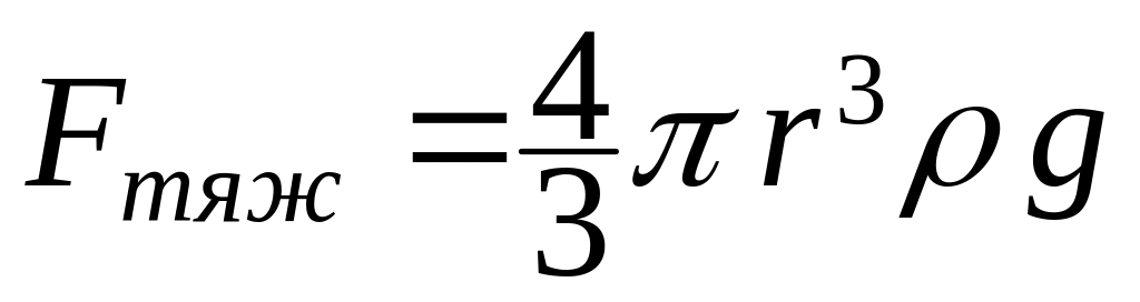 На падающий шарик радиусом r из вещества с плотностью в вязкой жидкости с плотностью 0 и вязкостью действуют силы: