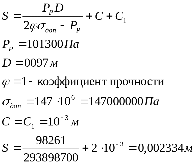 Исполнительная толщина обечайки: