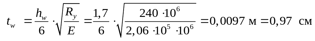Принимается tw = 12 мм, что примерно соответствует заданной гибкости стенки w = 150 (hw / tw = 1,7 /0,012 = 142).