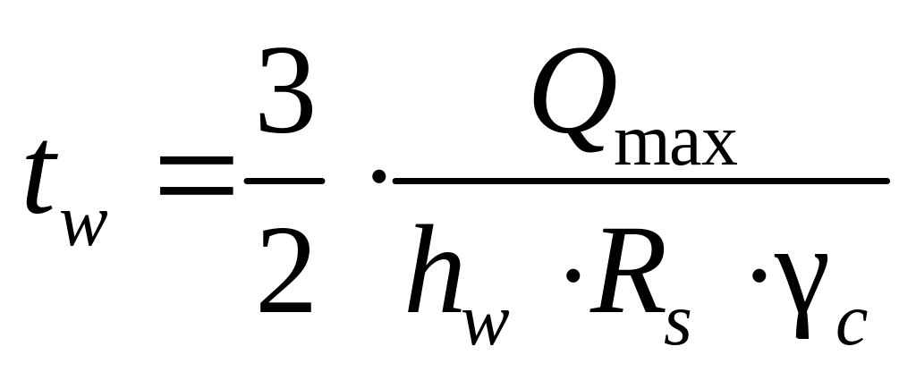Толщину стенки следует принимать минимально необходимой, исходя из заданной гибкости w, при определении hопт и фактически принятой высоты стенки hw: