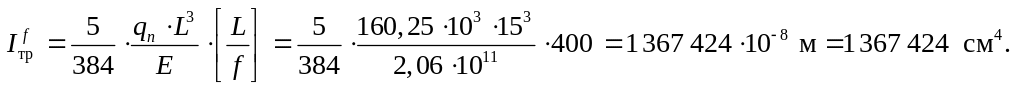 где f = L/400 = 1500/400 = 3,75 см 3,8 см =0,038 м – прогиб балки.