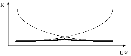 Каждый из этих транзисторов имеет внутреннее сопротивление, существенно зависящее от коммутируемого напряжения, а параллельное их соединение имеет намного меньшую заисимость общего сопротивления от коммутируемого напряжения, как это показано на рис.8.4.2.