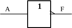 Условное графическое обозначение (УГО) логического элемента, реализующего функцию НЕ в отечественных схемах: |