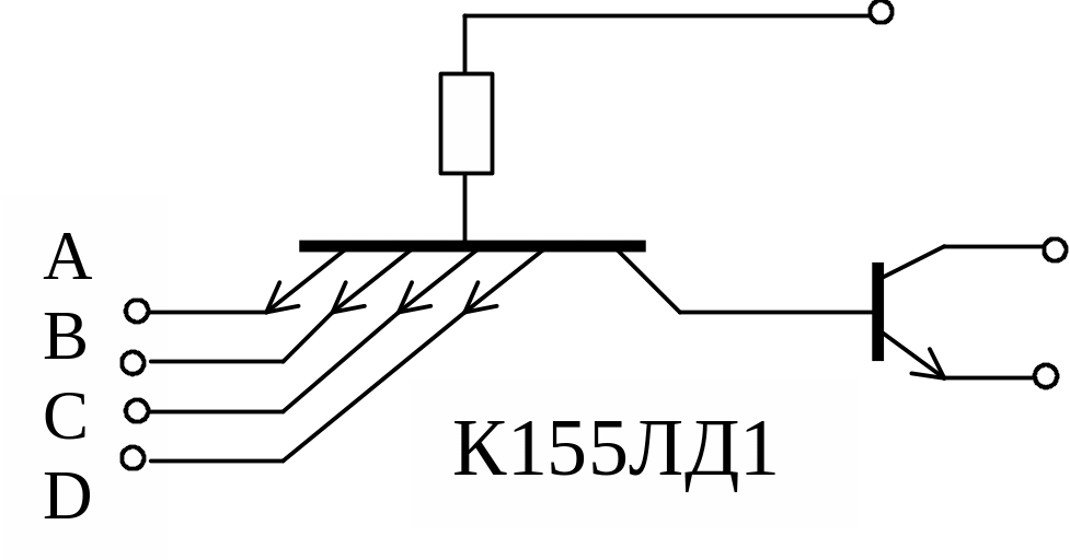 Такое подключение снижает быстродействие и помехоустойчивость микросхемы по И входу, к которому подключены внешние диоды. Статическая помехоустойчивость ТТЛ микросхем составляет 0,4 В. При подаче на один из дополнительных внешних диодов уровня логического нуля падение напряжения на этом открытом диоде практически полностью скомпенсирует напряжение статической помехоустойчивости, поэтому любая помеха при нуле на входе может привести к ложному срабатыванию.