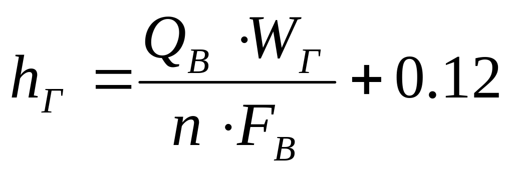 Где 0.12-растояние между верхним уровнем металла в горне и осью нижнего ряда фурм.