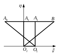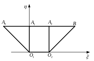 В общем случае характеристики в плоскости ζη будут иметь вид трапеции, представленной в развернутом виде на рисунке 2.6,а. Значение σ=σ2 в точке О2, принадлежащей зоне A2OB, должно быть больше, чем значение σ=σ1 в точке О1, принадлежащей зоне А0ОА1 (рисунок 2.6). В противном случае прямоугольные треугольники А0О1А1 и A2O2B будут иметь общие части, что показано на рисунке 2.6,б. Отметим, что при равномерном распределении давления вдоль поверхности засыпки и откоса для невесомой сыпучей среды зоны А0О1А1 и A2O2B трапеции