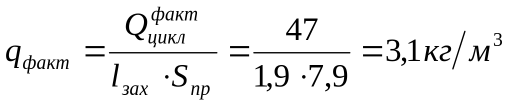 Средняя масса заряда в шпуре и величина заряда для каждого типа шпуров.