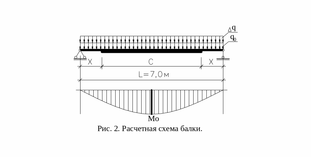 Определяем длину элементов усиления. Несущая способность балки (без усиления) равна: