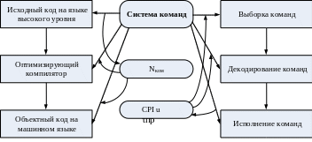Рис. 8. Взаимосвязь между системой команд и факторами, определяющими эффективность вычислений.
